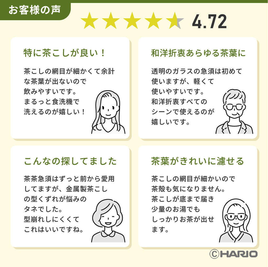 お客様の声から誕生した「洗いやすく型崩れしにくい茶こし」を採用した急須です。