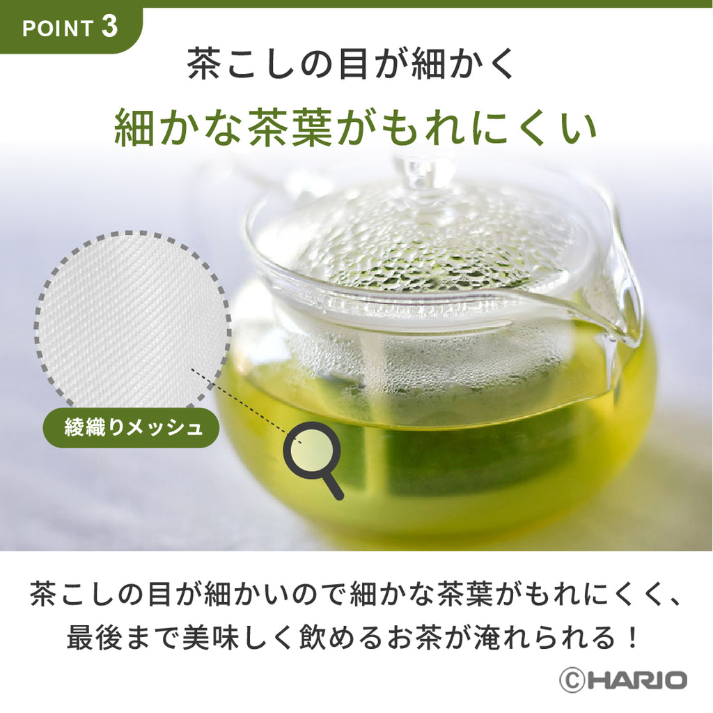・目の細かい綾織り茶こしが細かな茶葉までしっかりキャッチ。