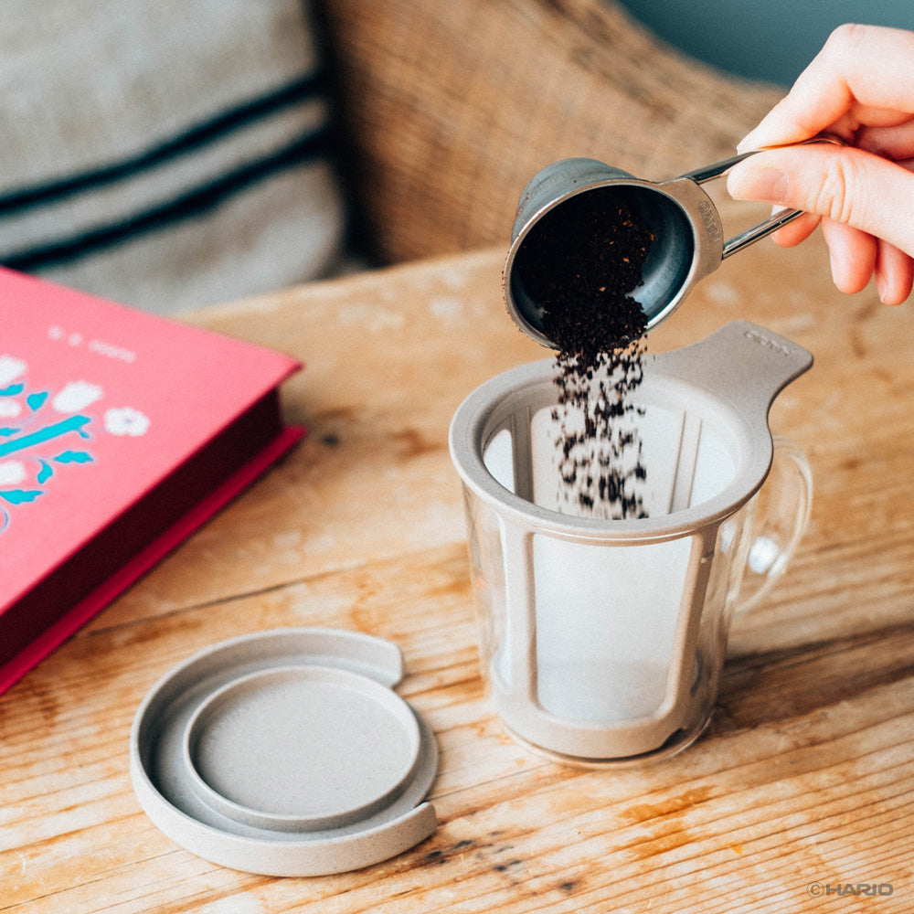 廃棄してしまう抽出後のコーヒー粉などの天然系無機物を配合しプラスチック使用量を約50%に減らした素材を使用しています。 ペーパーを使わないドリッパやコーヒー粉の使用量が少なくても美味しく淹れられる器具を開発しました。