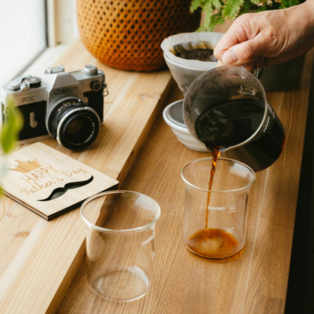 そして世界の研究者たちに長年使われ続けているビーカーをサーバーとして組み合わせた、ビーカーサーバー&ドリッパーセット。