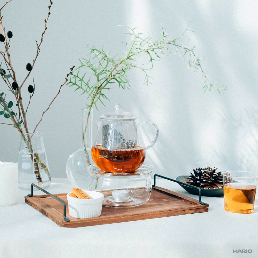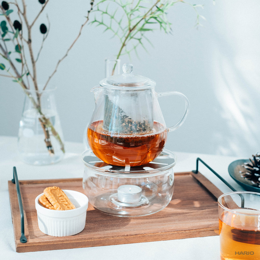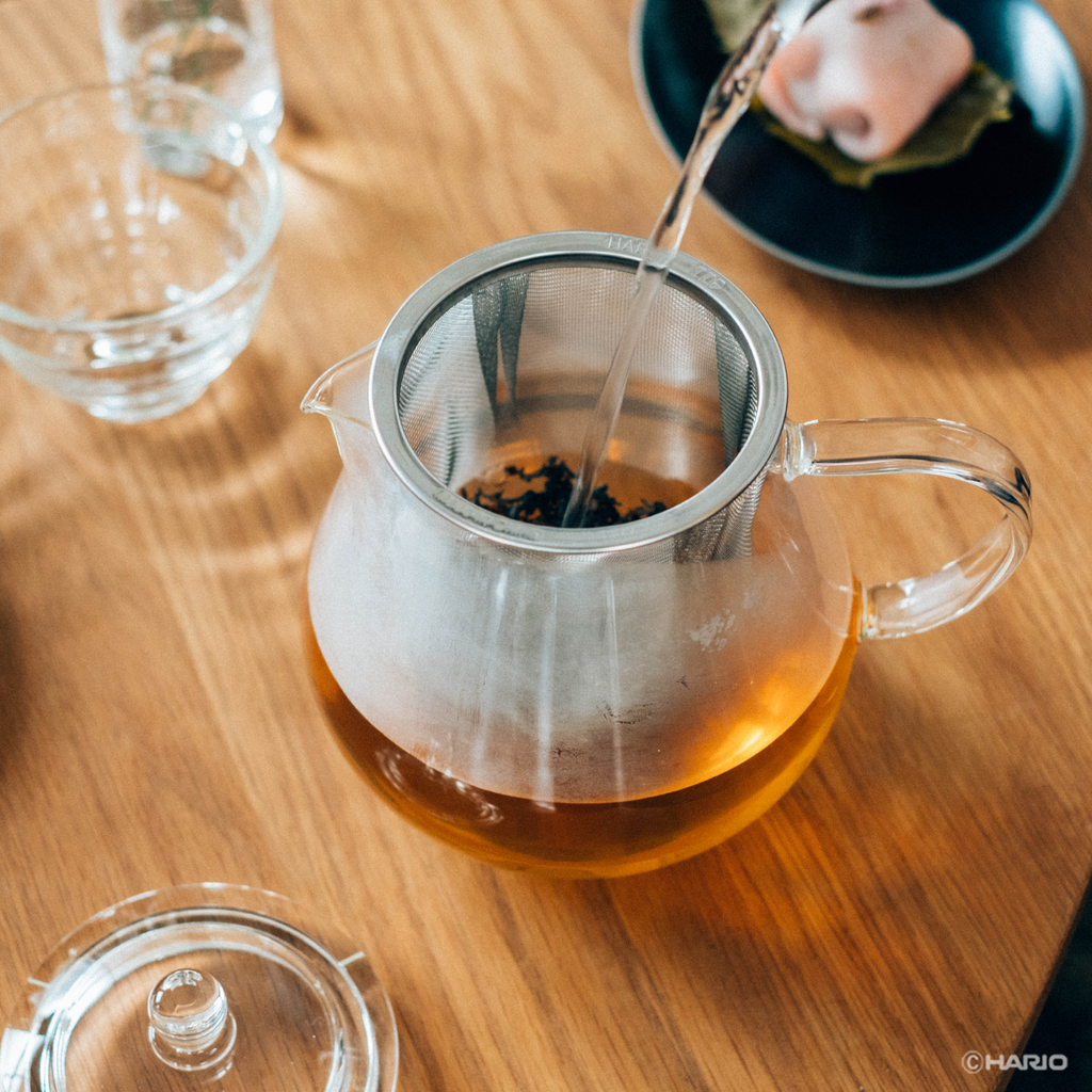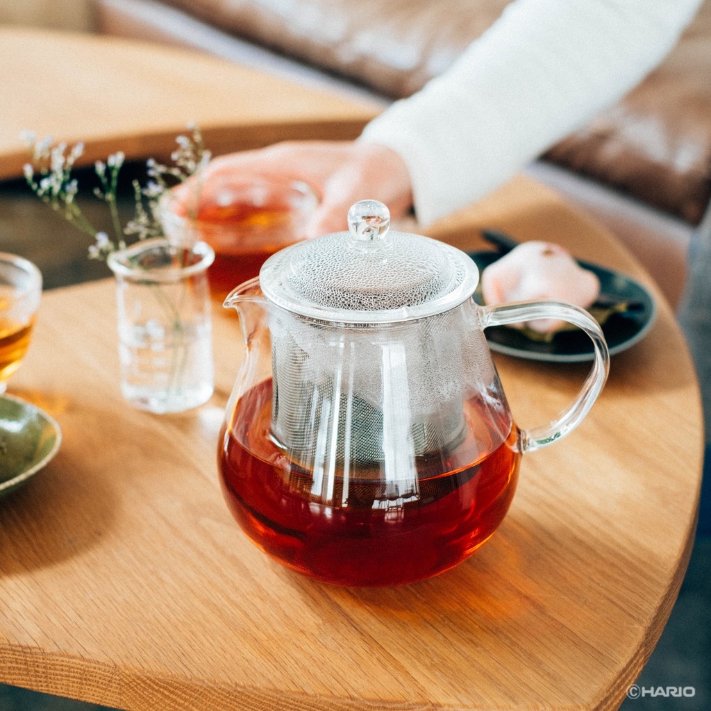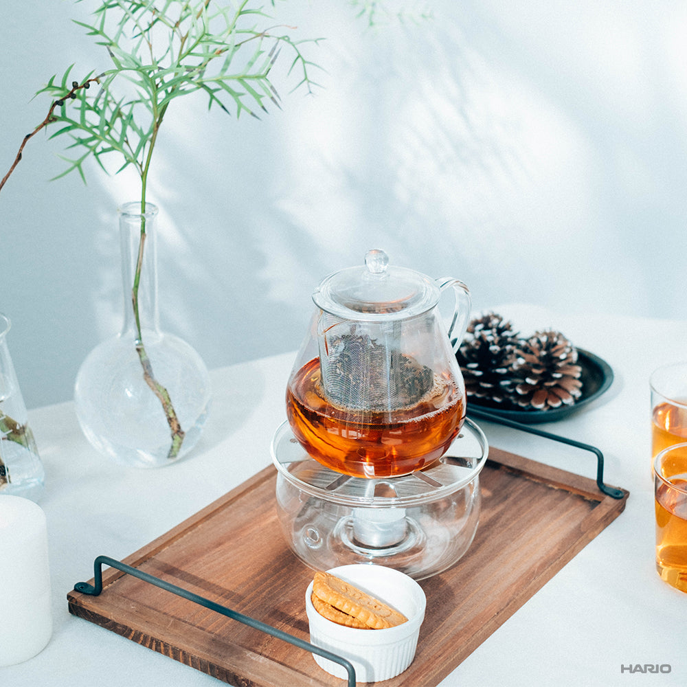 茶葉が広がり、かつ少量のお湯でも抽出しやすいように大きい茶こしを付けました。紅茶にフルーツを入れてアレンジティーも愉しめます。茶こしを外せば電子レンジでもご使用いただけます。電子レンジを使用する際は、茶こしを外してください。
