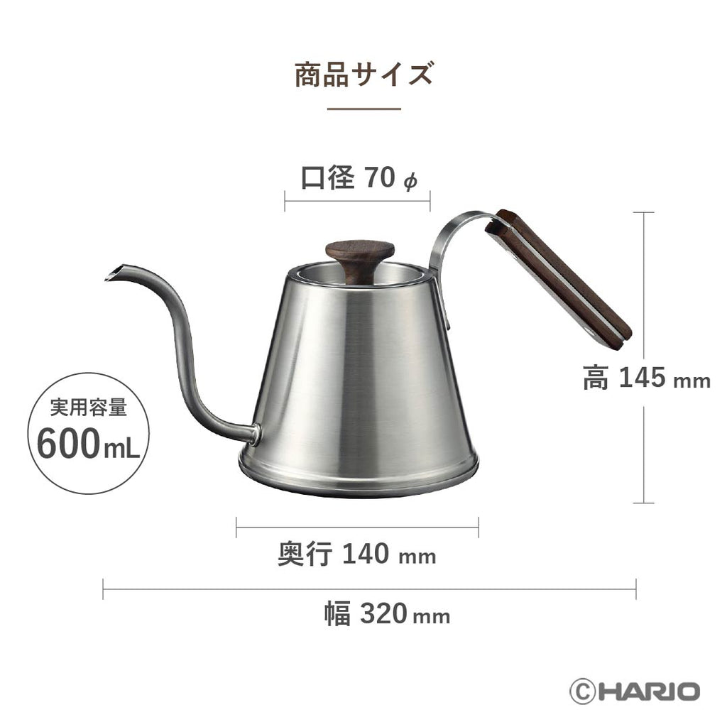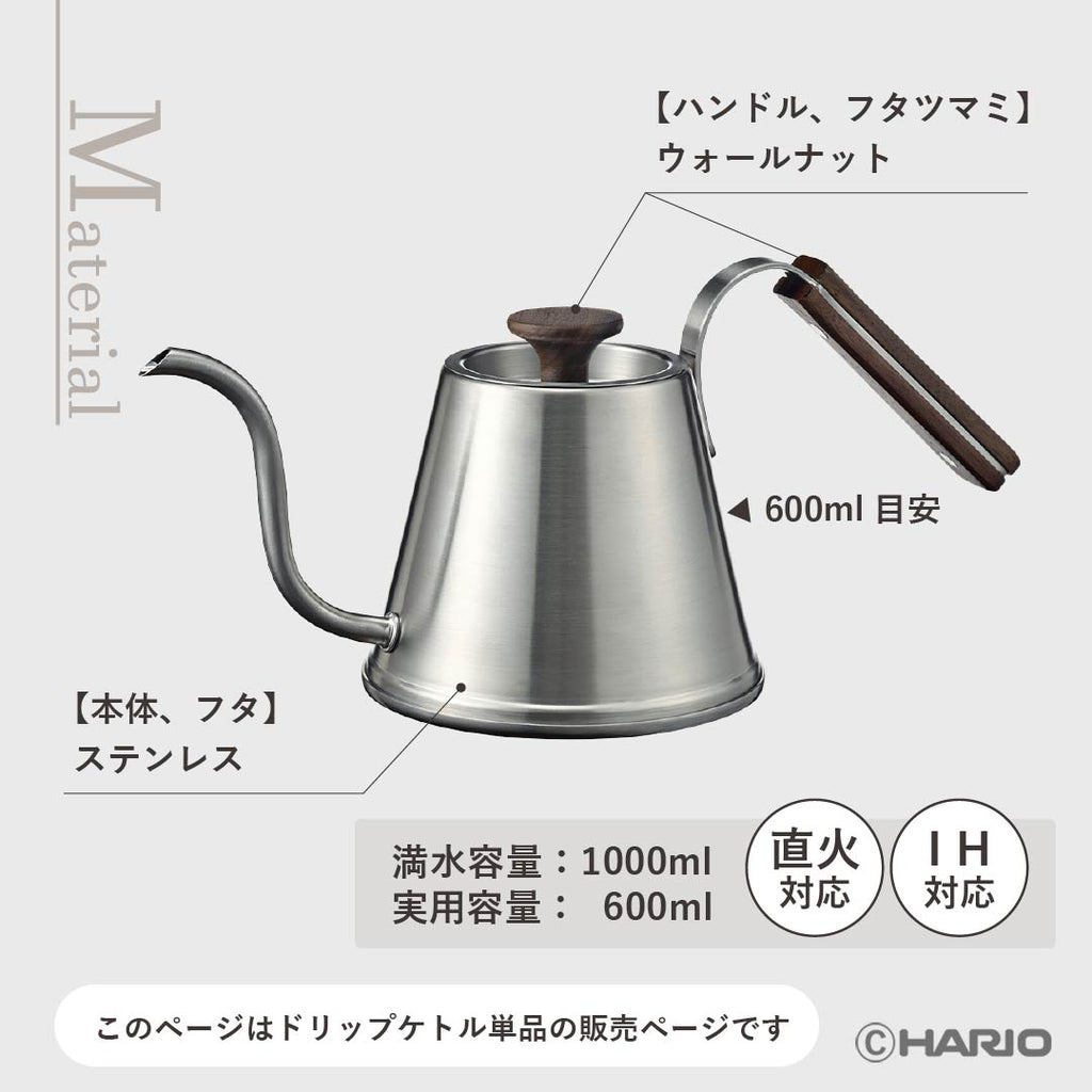 ハンドルとフタツマミにウォールナットを使用したドリップケトル。