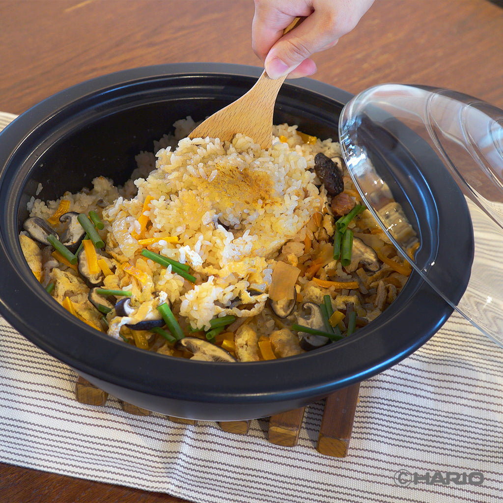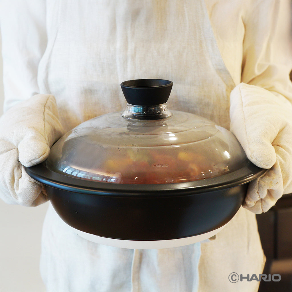 中身が見え耐熱ガラス製のフタで普段使いしやすい土鍋です。