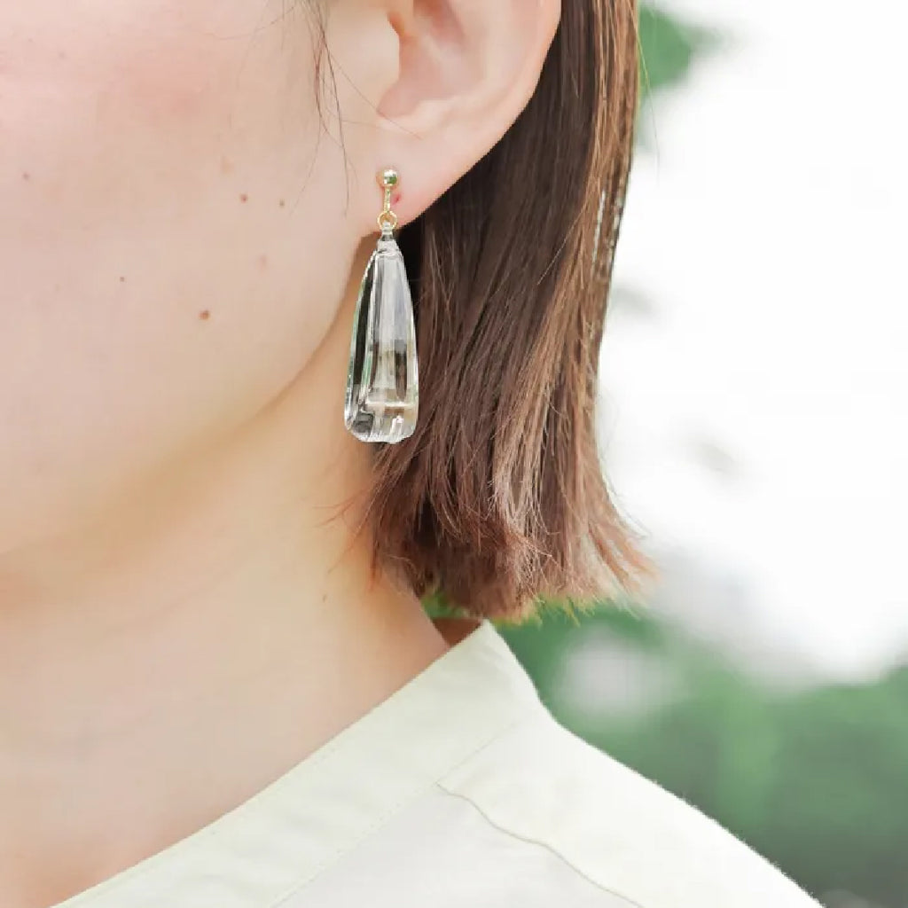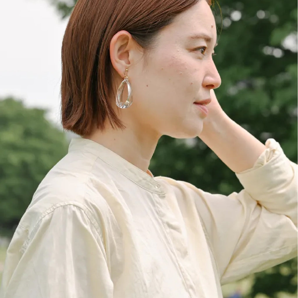 *着用の際、正面からはガラスが縦向きに(画像1枚目)、横からは雫型に(画像2枚目)見える仕様になっています。