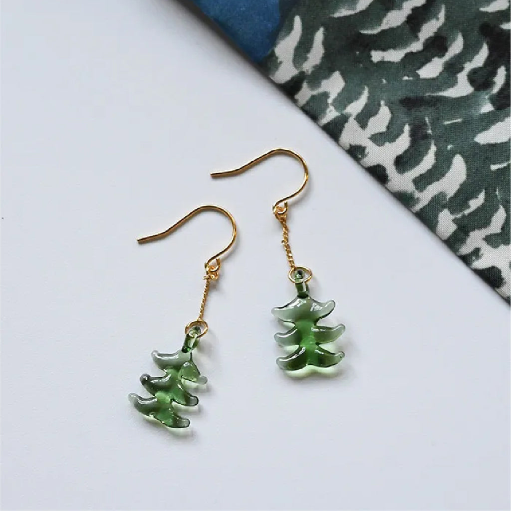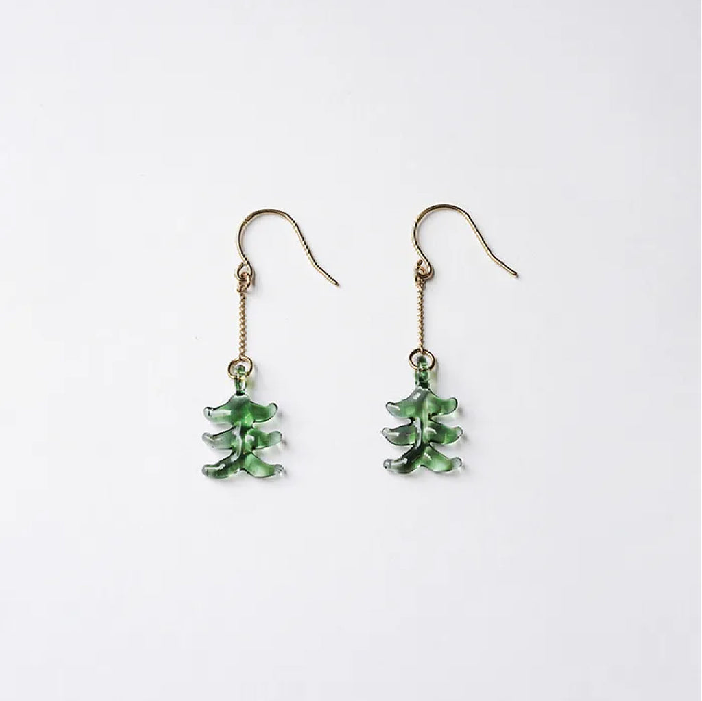 イイダ傘店の繊細で鮮やかなテキスタイルをガラスで表現した、生き生きと輝くガラスのアクセサリー。