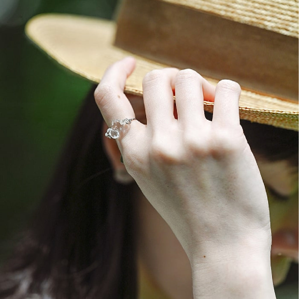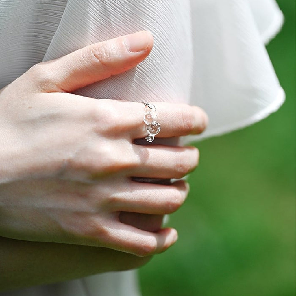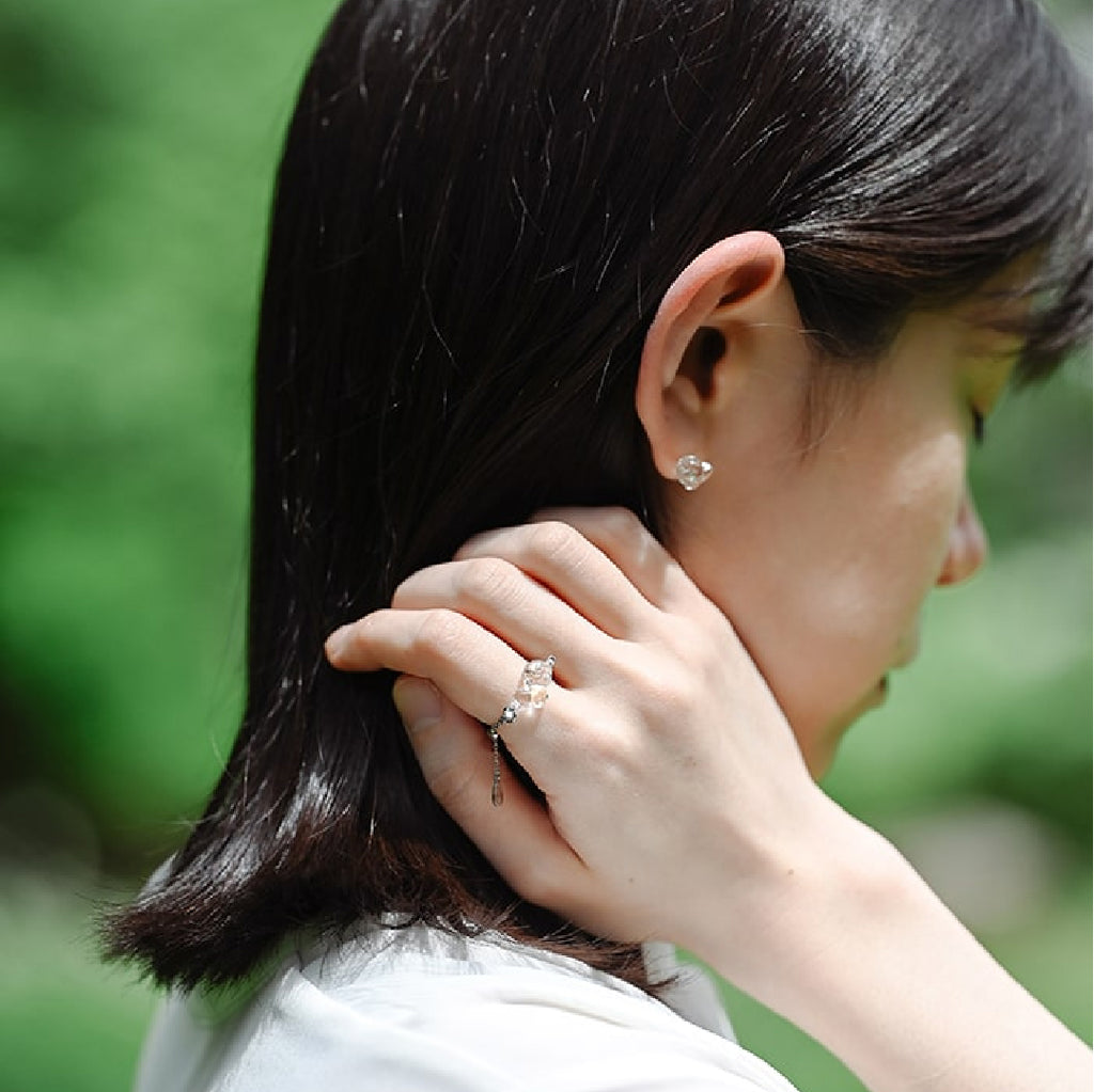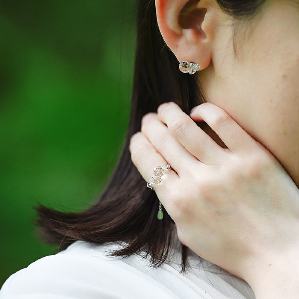 陽の光を受けて輝く朝露のような、儚げなきらめきをガラスで表現しました。
