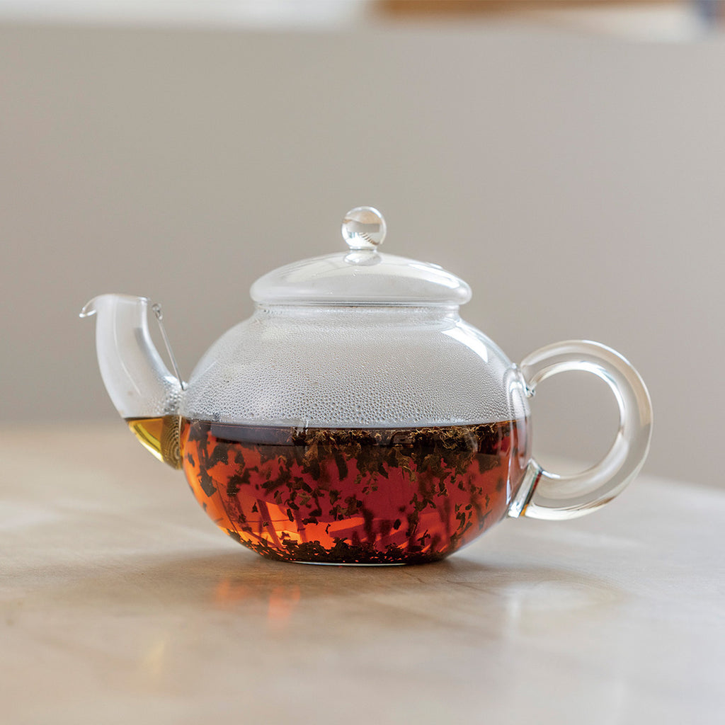 ○茶葉が動き、ジャンピングがおこりやすい丸形ポット。
