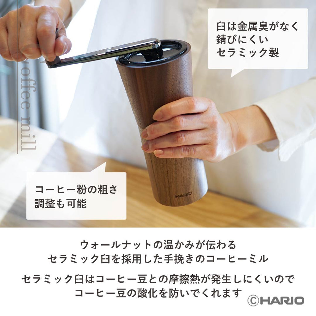 臼は金属臭がなく錆びにくいセラミック製。コーヒー豆との摩擦熱が発生しにくいのでコーヒー豆の酸化を防いでくれます。もちろんコーヒー粉の粗さの調整も可能です。