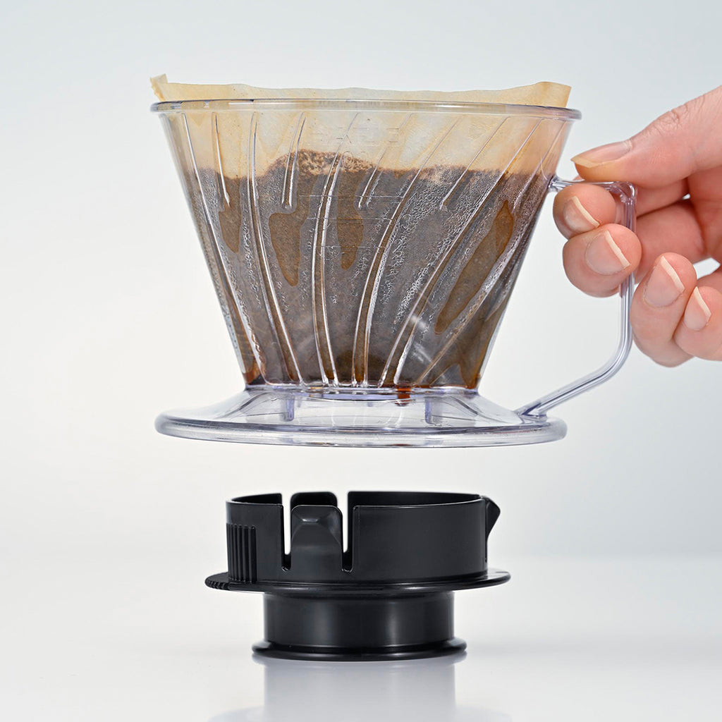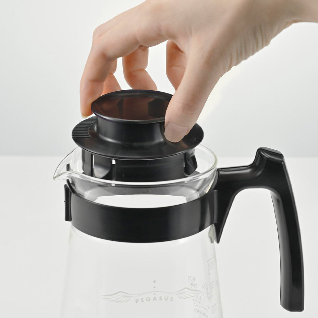 取り外ししやすいツマミフタ。フタは裏返すと簡易的なドリップトレイとして使えます。