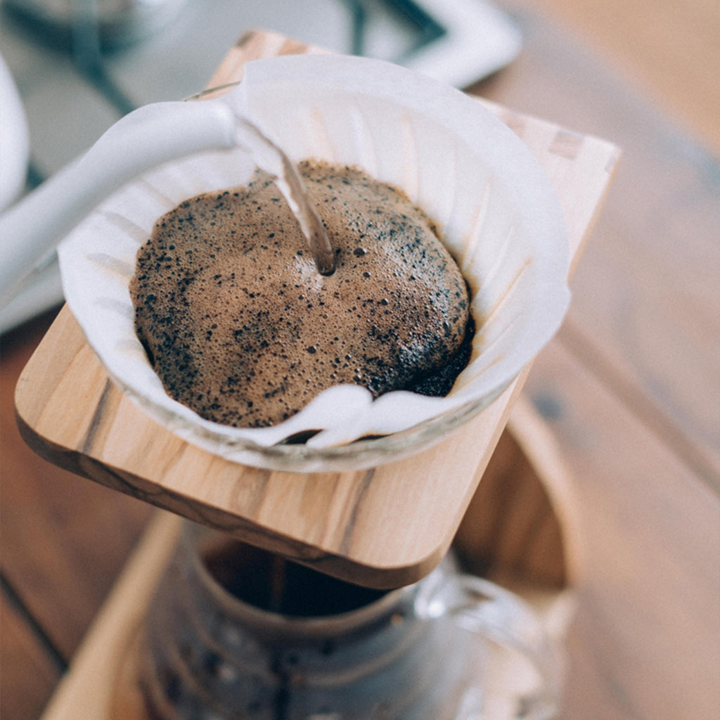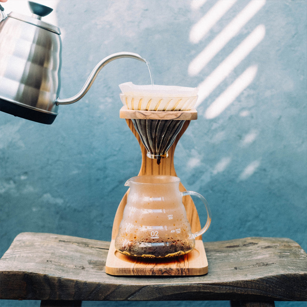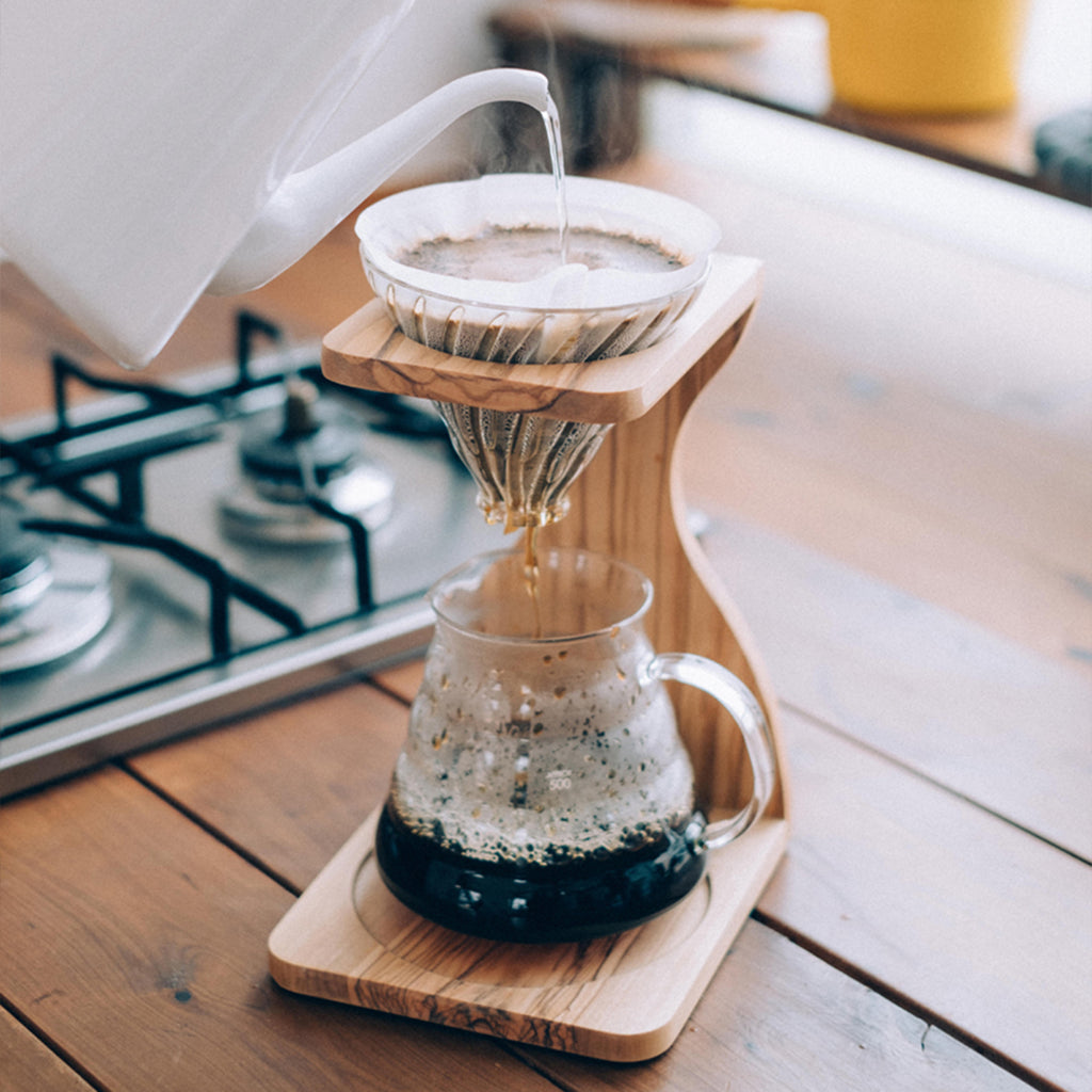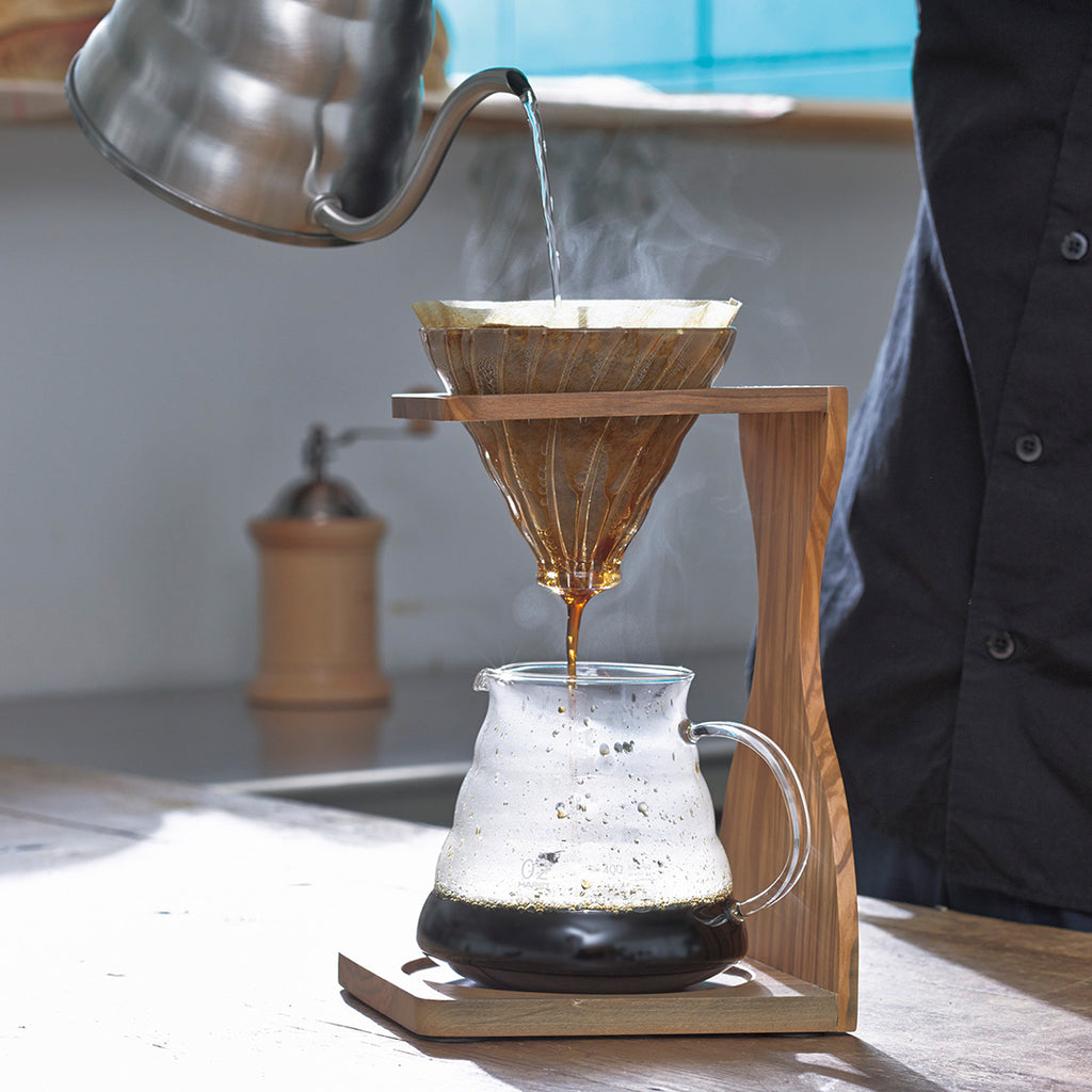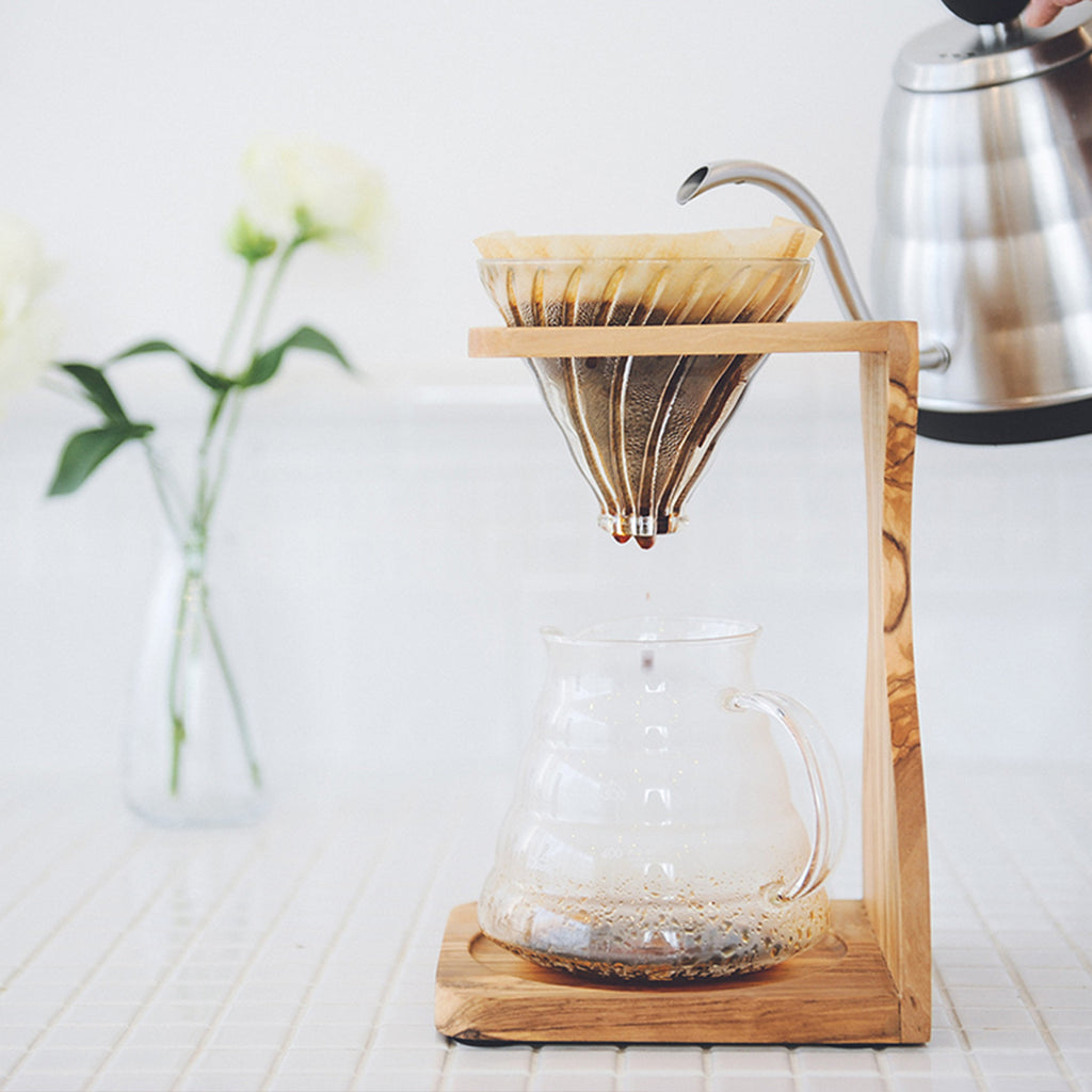 オリーブウッドを使用したドリップスタンドはナチュラルなイメージで、インテリアにも馴染むデザインです。